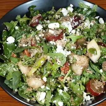 We paired this with a green bean salad and some french bread one night and my israeli couscous salad and. Adjust vinegar and oil quantities as needed. Was eaten up at the school, community day picnic despite me subbing the lemon (forgot to buy one) … reply. Once the couscous is cooled add the mint, corinader and pomegranates. The challenge was simple, no more than 10 ingredients and less than 15 minutes to make for busy parents on the go.